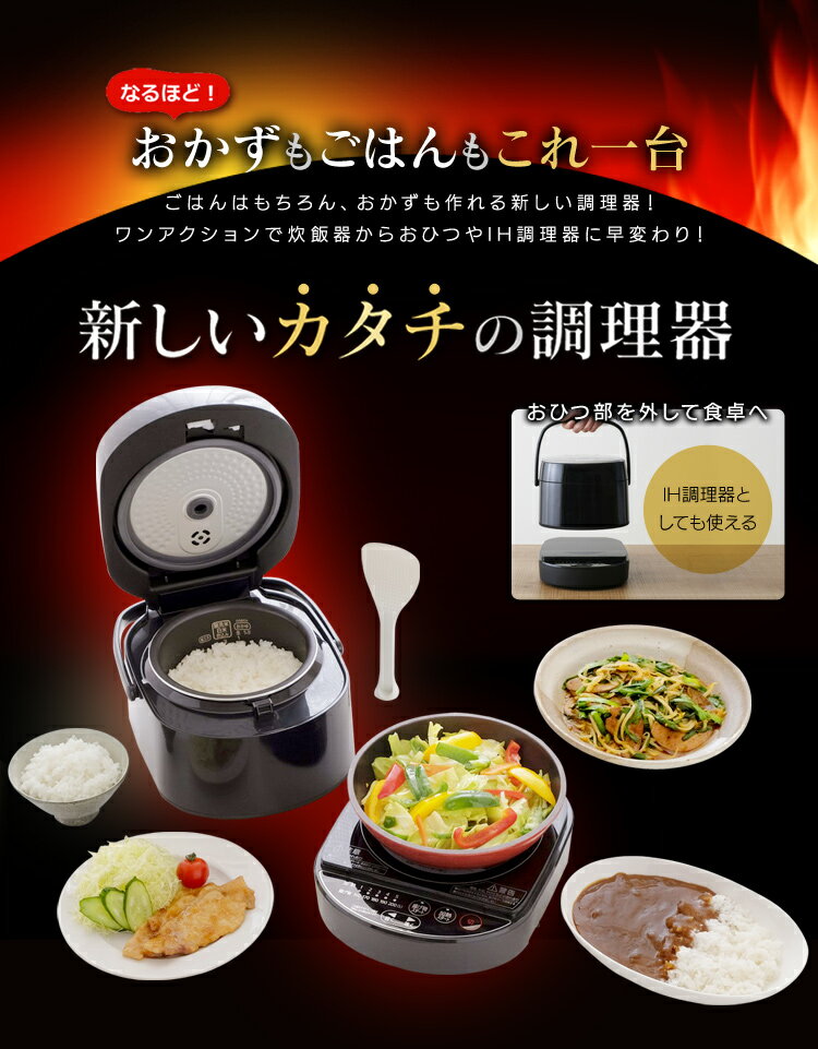 ■おかずもごはんもこれ一台!普段はジャー炊飯器、本体はおひつとして、本体を外せばIH調理器として使えます。