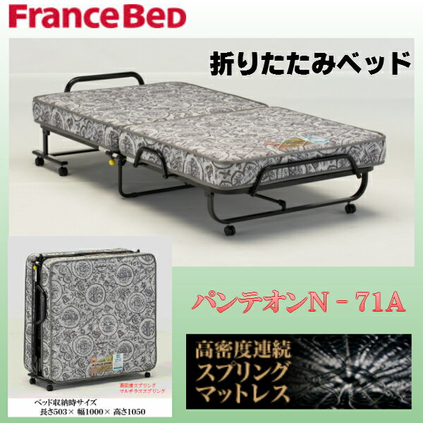 フランスベッド製キャスター付き折りたたみベット パンテオンN-71A シングル マットレスセット マルチラススーパースプリング使用 日本製 条件付送料無料